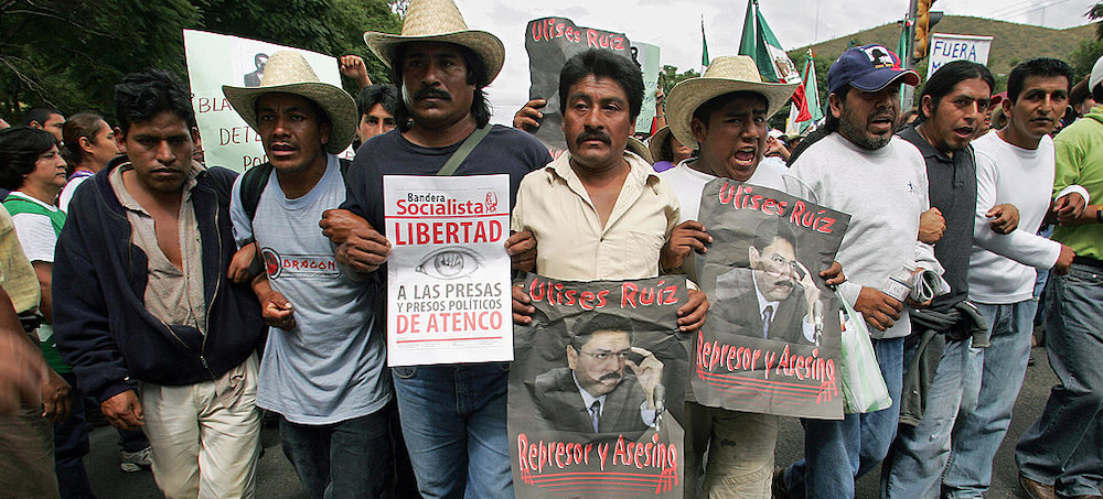 Members of the Popular Assembly of the Peoples of Oaxaca (APPO) take part in a demonstration against then governor Ulises Ruiz in November 2006. (photo: Alfredo Estrella/Getty Images)