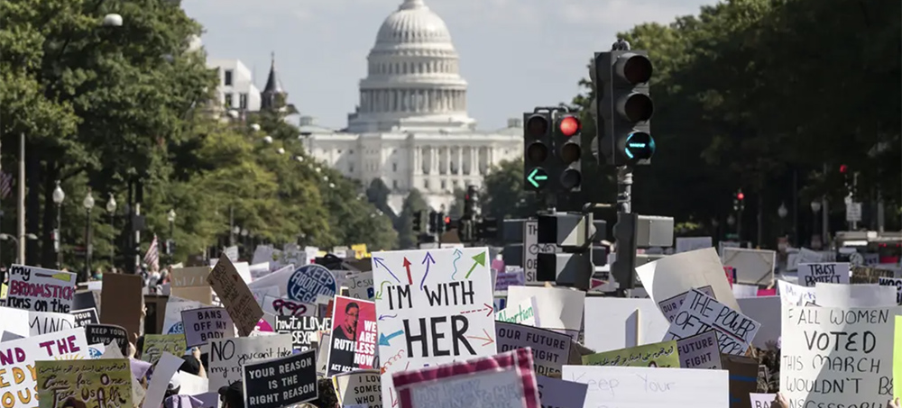 It was the first Women's March of the Biden administration, and it came a month after the Supreme Court took no action to block Texas's six-week abortion ban from taking effect, halting the vast majority of abortions in the state. Texas is the first state to have an early-term abortion ban take effect in the decades since Roe v. Wade, the landmark decision that made abortion legal nationwide.