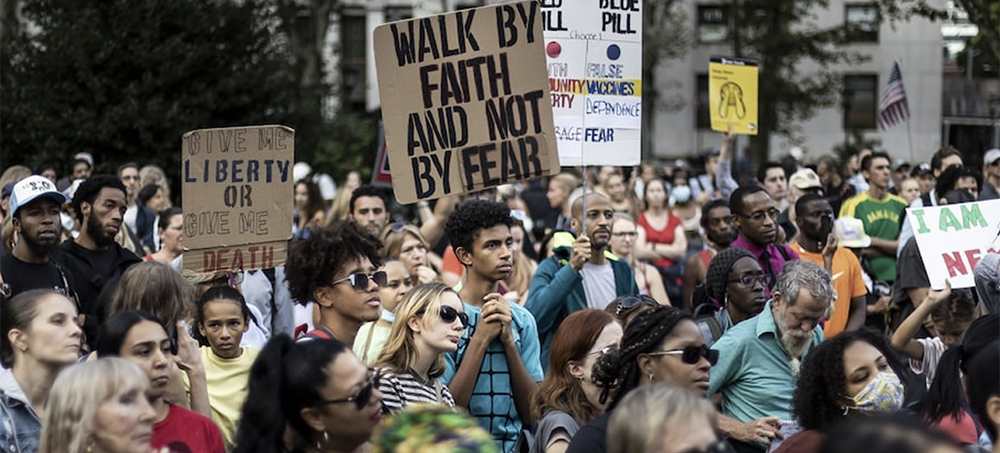 Protesters gather to push back against coronavirus vaccine mandates in New York City last month. (photo: Justin Lane/EPA-EFE/REX/Shutterstock)