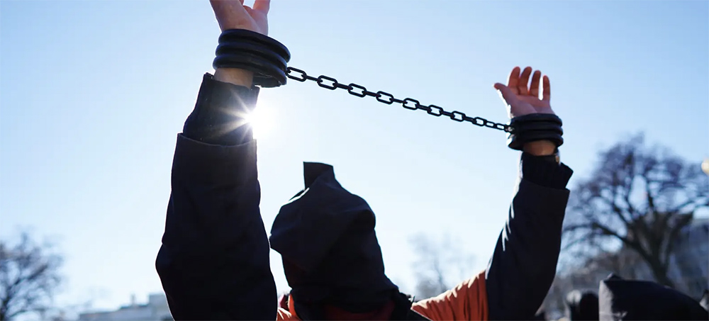 A protestor calling for the closure of the Guantanamo Bay Prison on January 11, 2016, in front of the White House. (photo: Mandel Ngan/AFP/Getty Images)