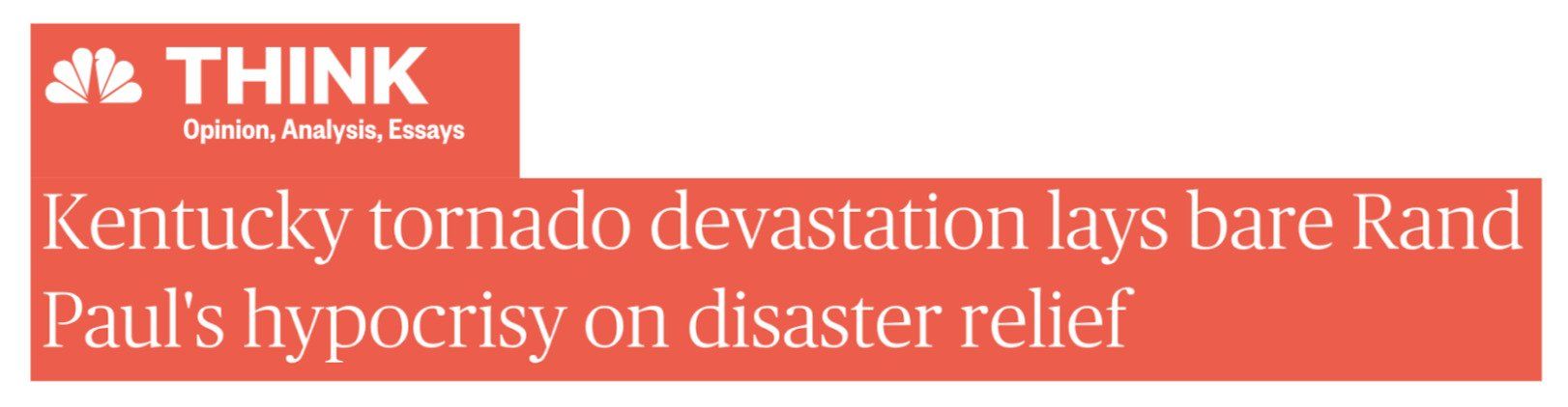 Indeed, throughout his entire time in office, Paul has consistently voted against disaster relief, even opposing urgently needed aid for Kentucky itself in the face of the Covid-19 pandemic. At the same time, he’s sought tax breaks for the ultra-wealthy and handouts to big corporations — who of course fund his campaign. At last, he sharply pivoted to request aid following the devastation of the recent tornadoes, but it merely exposes his hypocrisy.