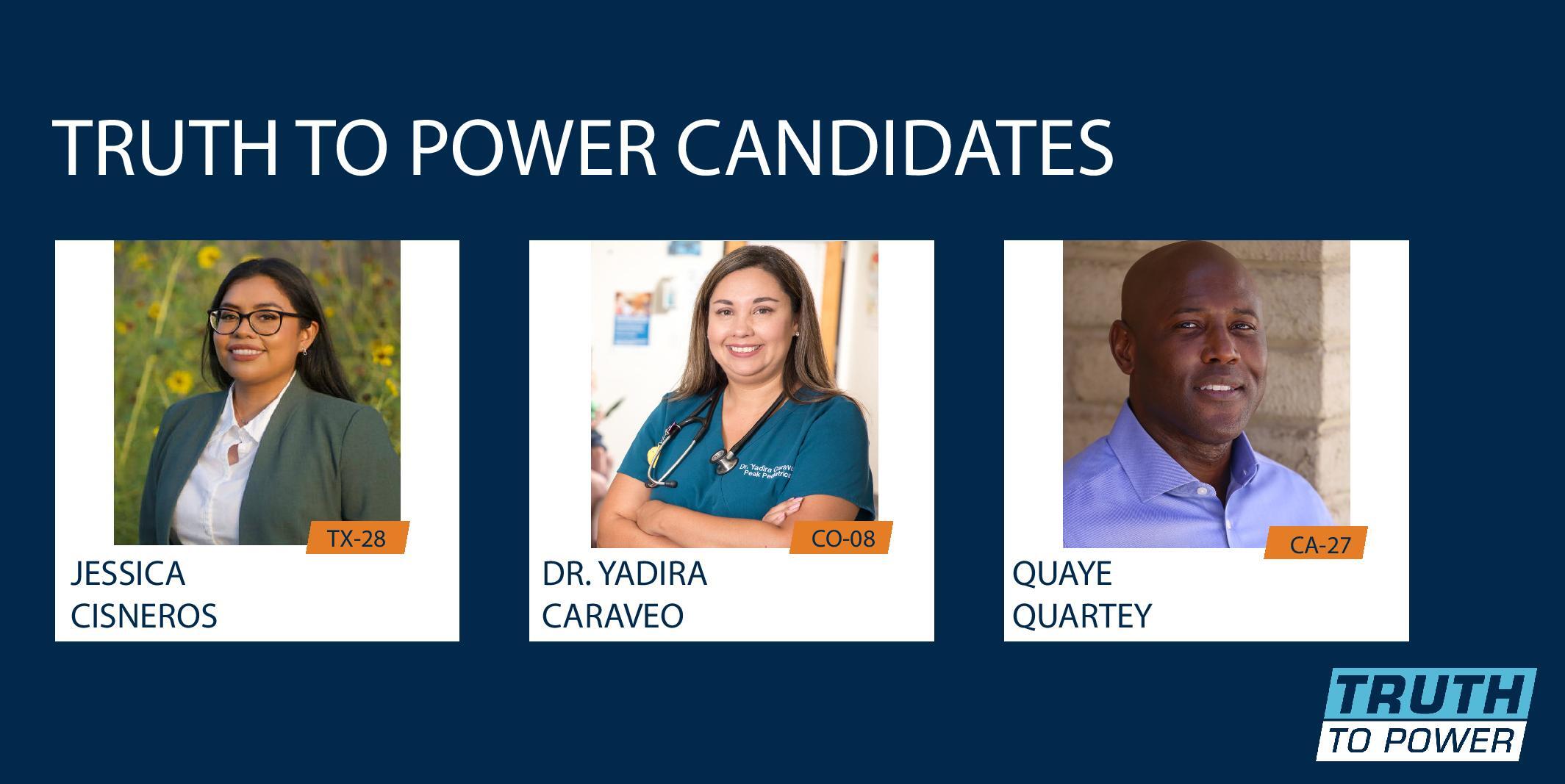 In order to create real change, we need to elect more progressive leaders like Dr. Yadira Caraveo, Quaye Quartey, and Jessica Cisneros. Join me in supporting their campaigns with a contribution that will be split amongst them and Truth to Power PAC.