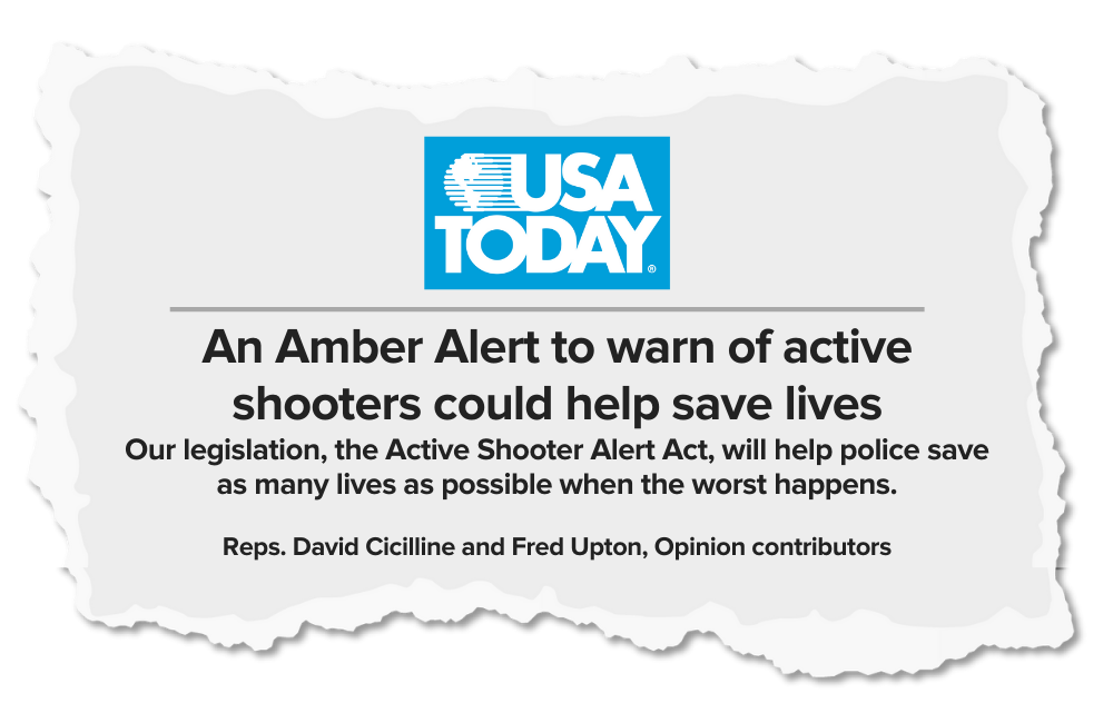 Earlier this week, I joined forces with Rep. Fred Upton (R-MI) to introduce the Active Shooter Alert Act into the House.