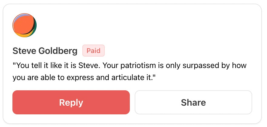 I do “tell it like it is.” I don’t hold back — even if the truth is hard to hear. If you find my political commentary valuable, I hope you’ll consider becoming a paid subscriber. It is only through your financial support that my team and I can continue to produce the volume of content that we do on a monthly basis. All you need to do is click here: