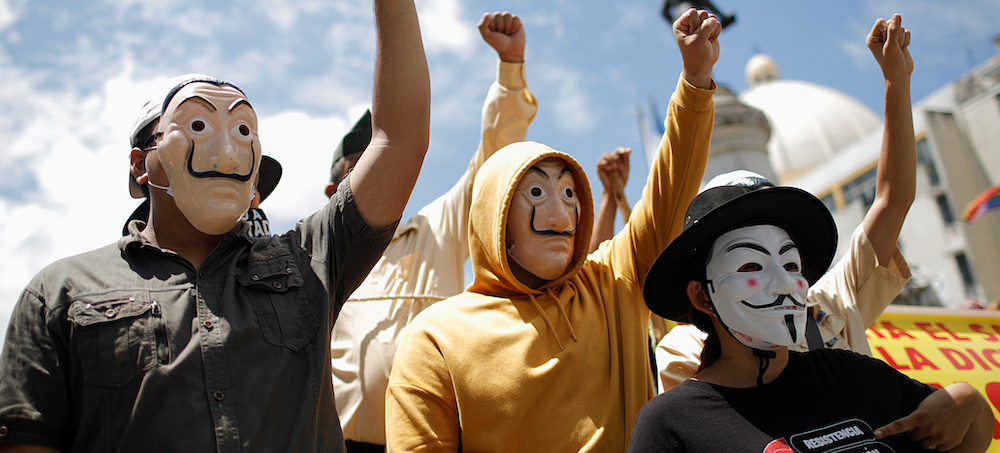 El Salvador: Thousands Protest Against President BukelePeople participate in a protest against the use of Bitcoin as legal tender and legal reforms to extend president Nayib Bukele's term in San Salvador, El Salvador. (photo: Jose Cabezas/Reuters)