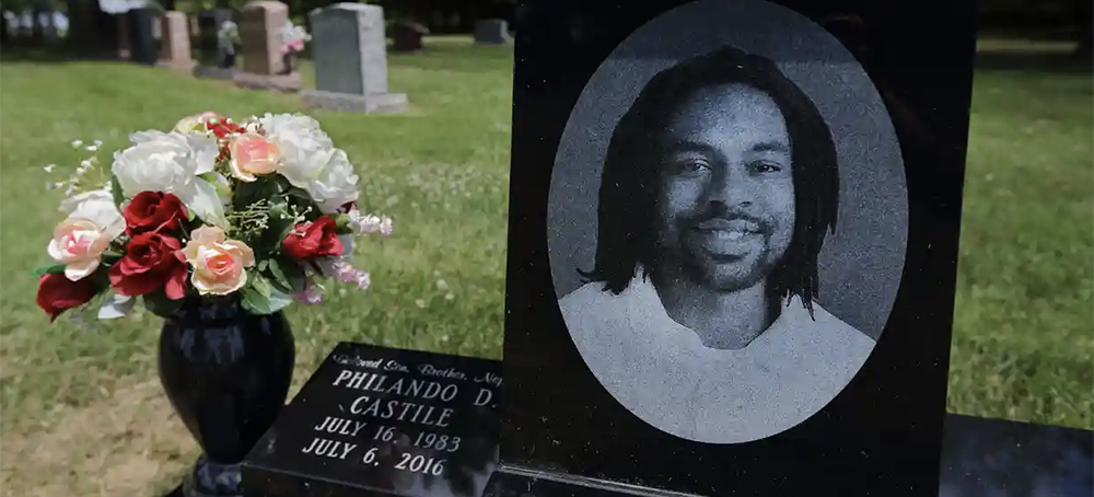 The grave of Philando Castile at Calvary cemetery in St Louis. Castile was shot and killed by a police officer in a 2016 stop for a broken tail light in Minnesota. (photo: David Carson/AP)