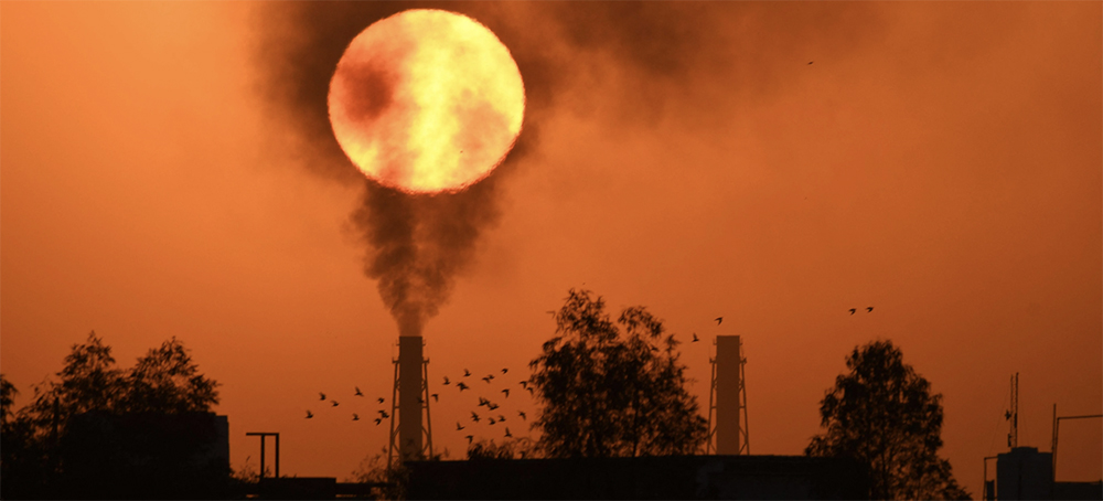 A bright orange sunset behind an oil refinery. (photo: Assaad Al-Niyazi/AFP/Getty Images)