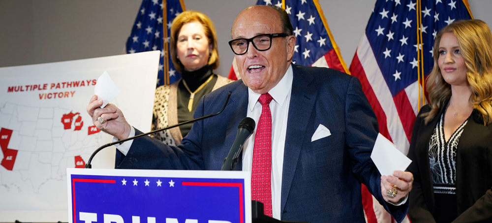 Rudolph W. Giuliani at a Nov. 19, 2020 news conference at Republican National Committee headquarters. (photo: Sarah Silbiger/The Washington Post)
