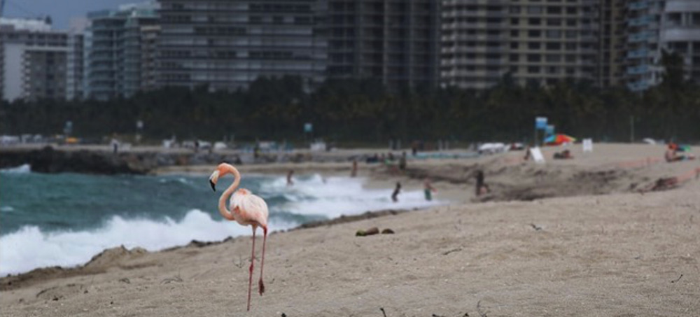 An American flamingo walks along Haulover Beach in Miami Beach, Florida, in 2018. The birds were once native to Florida, but haven't bred in the state for over a century. (photo: Joe Raedle/Getty)