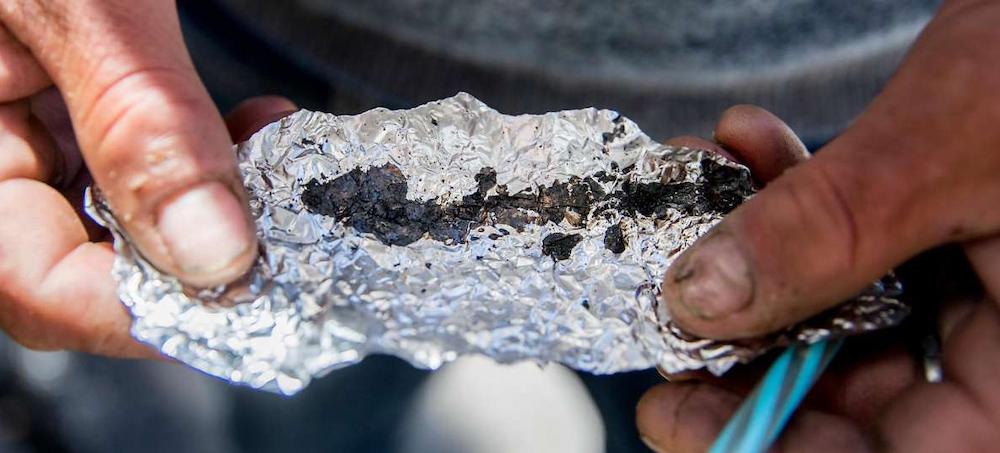 A man holds foil containing fentanyl. (photo: Jessica Christian/The Chronicle)