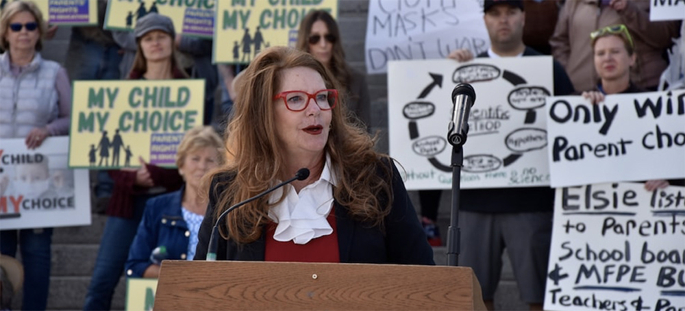 A superintendent speaks at a rally opposing mask requirements in schools in front of the state Capitol in Helena, Mont. (photo: Iris Samuels/AP)