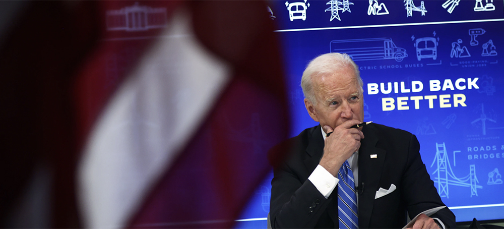 President Joe Biden participates in a virtual meeting on Infrastructure Investment and Jobs Act at South Court Auditorium at Eisenhower Executive Office Building on Aug. 11, 2021 in Washington, D.C. (photo: Alex Wong/Getty Images)