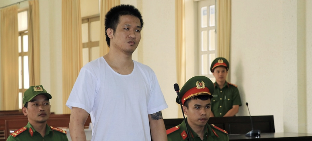 Nguyen Quoc Duc Vuong, center, was sentenced by a Vietnamese court on July 7, 2020, to eight years in prison for live-streaming videos "humiliating" the country's leaders on social media. (photo: Vietnam News Agency/AFP/Getty Images)